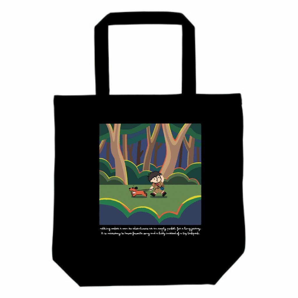 和訳「空っぽなポケットほど人生を冒険的にするものはない。必要なのは大きなカバンではなく口ずさめる一つの歌と、相棒だ。」